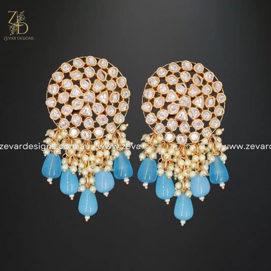 Kundan Polki Bangles with AD - Powder Blue Colored Stones