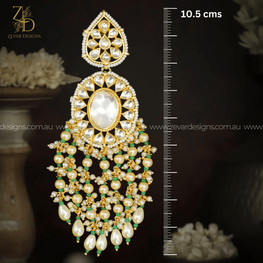 Tyaani Inspired Pachi Kundan Earrings - pearls & mint
