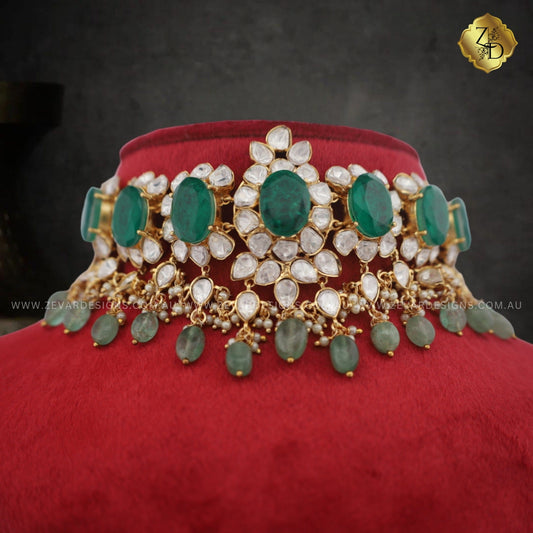 ‘TYAANI’ inspired Polki Choker Set - Emerald Green