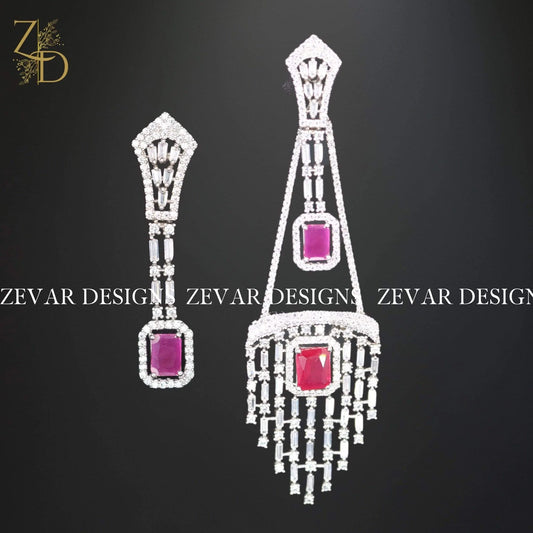 Zirconia 2 in 1 Earrings in Ruby Red and White Rhodium