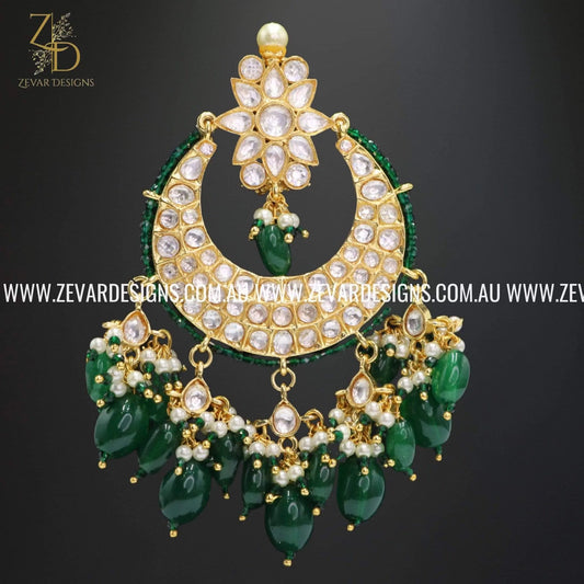 Kundan Polki Chandbali in Rose Gold and Emerald Green