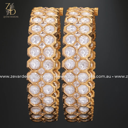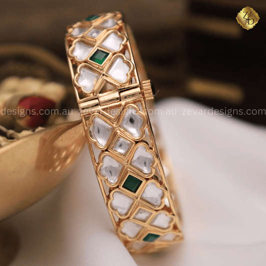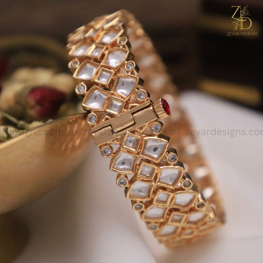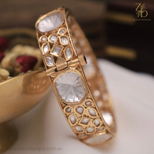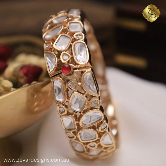 Kundan Uncut Polki AD Bangles - White Rhodium