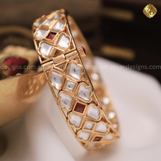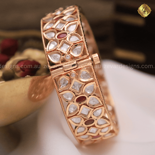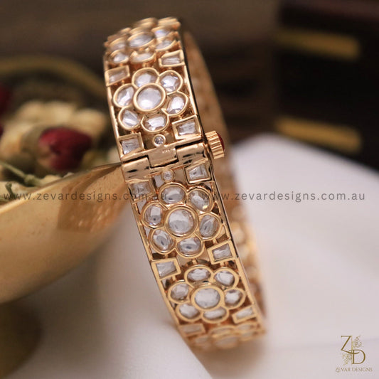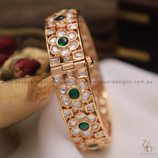 Kundan Uncut Polki AD Bangles - Rose Gold