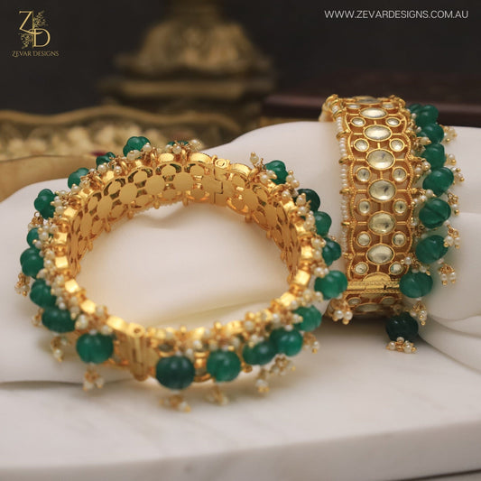 Kundan Polki Bangles with AD -Mint Colored Stones