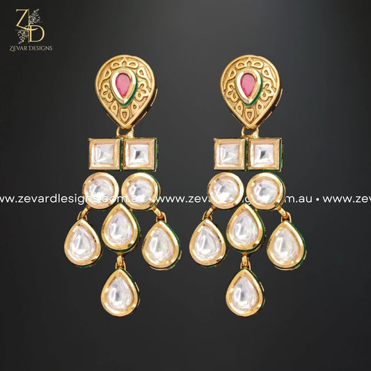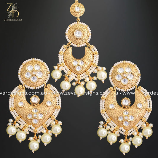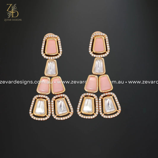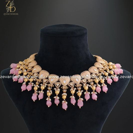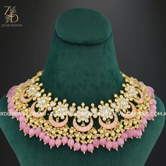 Pachi Kundan Necklace Set with Tikka - Baby Pink Drops