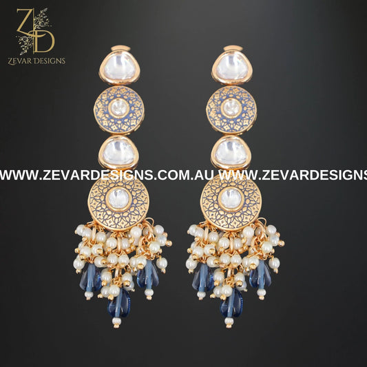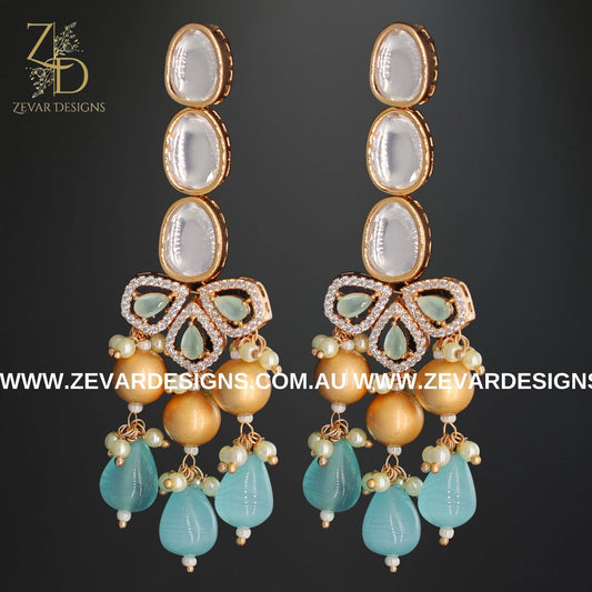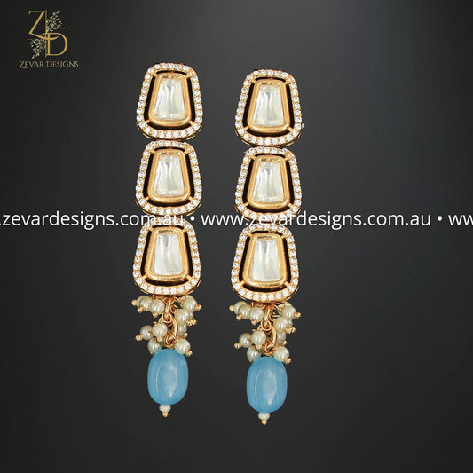 Kundan Uncut Polki Necklace Set - Powder Blue