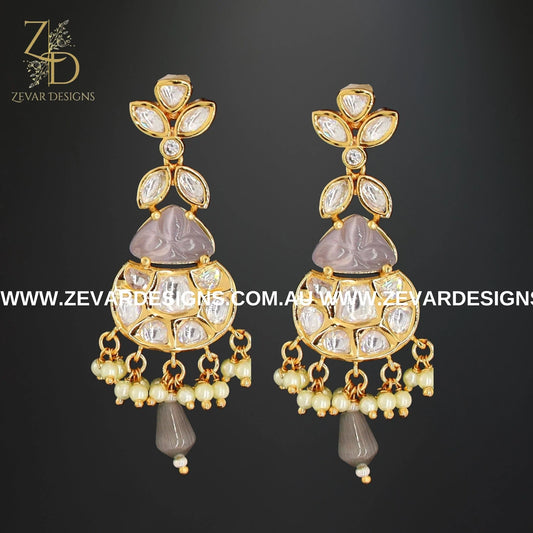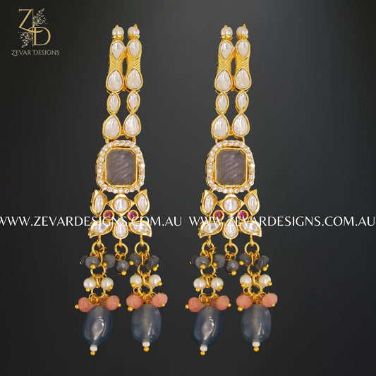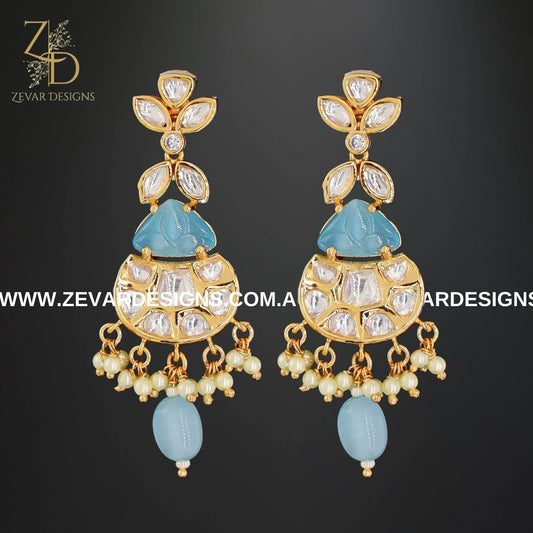 Kundan Polki Necklace Set with Powder Blue Carved Stones