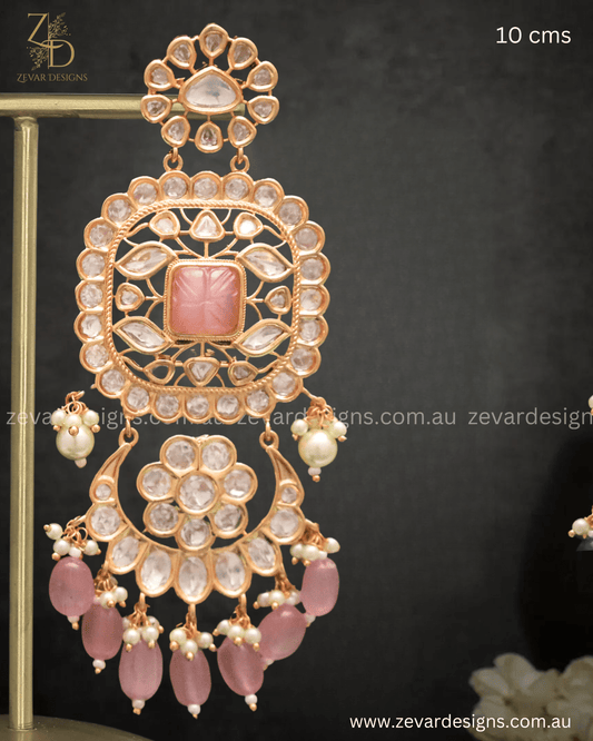 Heritage Inspired Chandbali Earrings - Pink