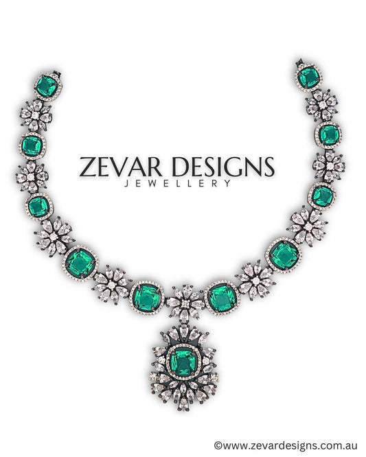 AD Necklace Set - Emerald Green