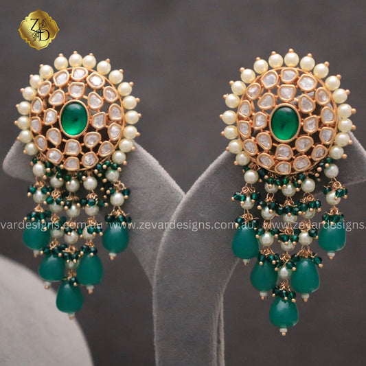 Heritage Inspired Chandbali Earrings - Emerald green