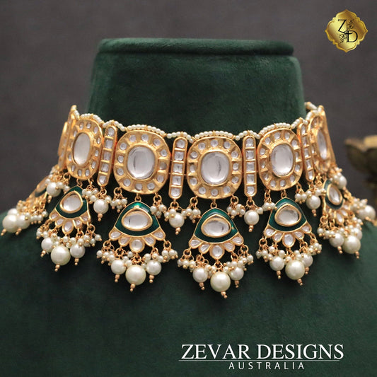 ‘Tyaani’ Inspired Kundan Polki Choker Set with Tikka -Pearls