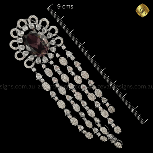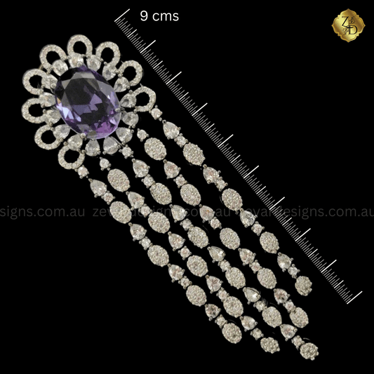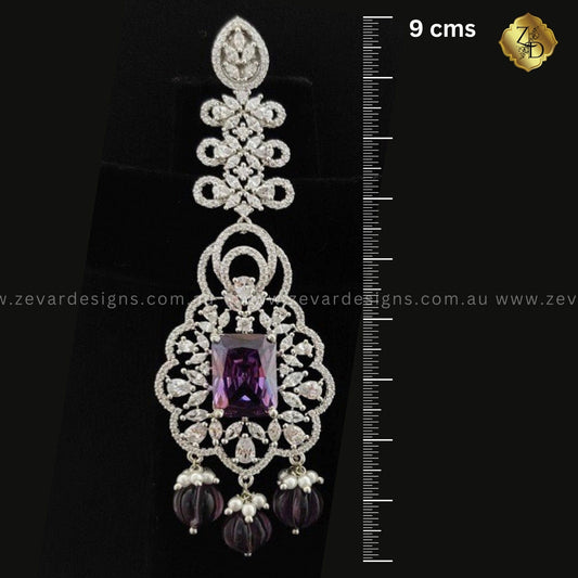 Purple AD/ZIRCONIA STUDDED DROP EARRINGS