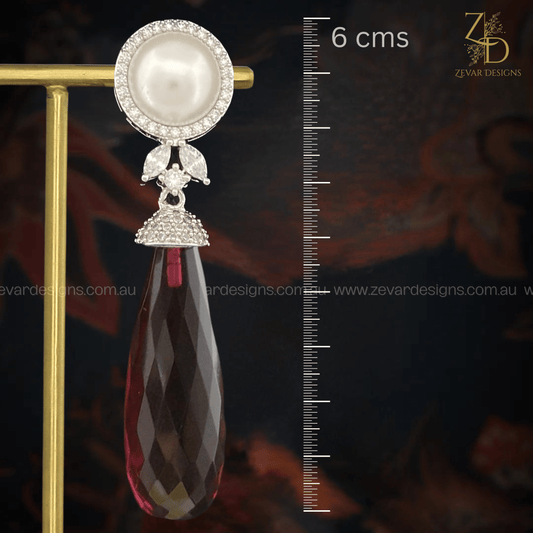 Pearl & AD Dangle Earrings - Crystal Red
