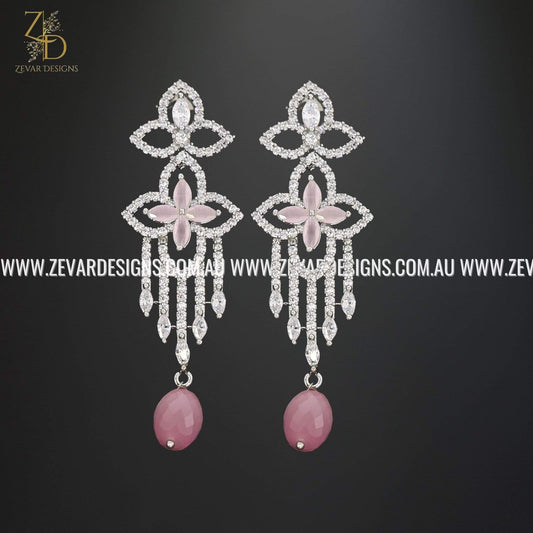 AD/Zircon Necklace Set - Rose Gold and Pink