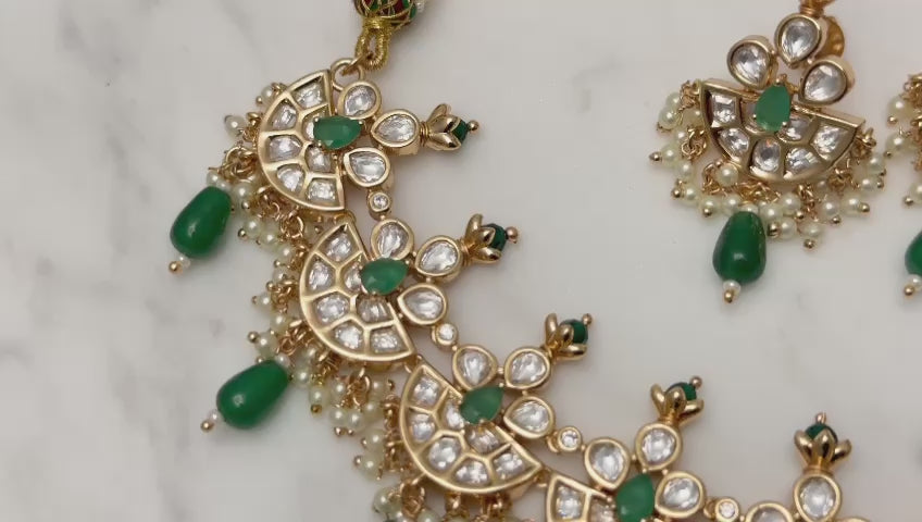 Kundan Polki Necklace Set in Emerald Green